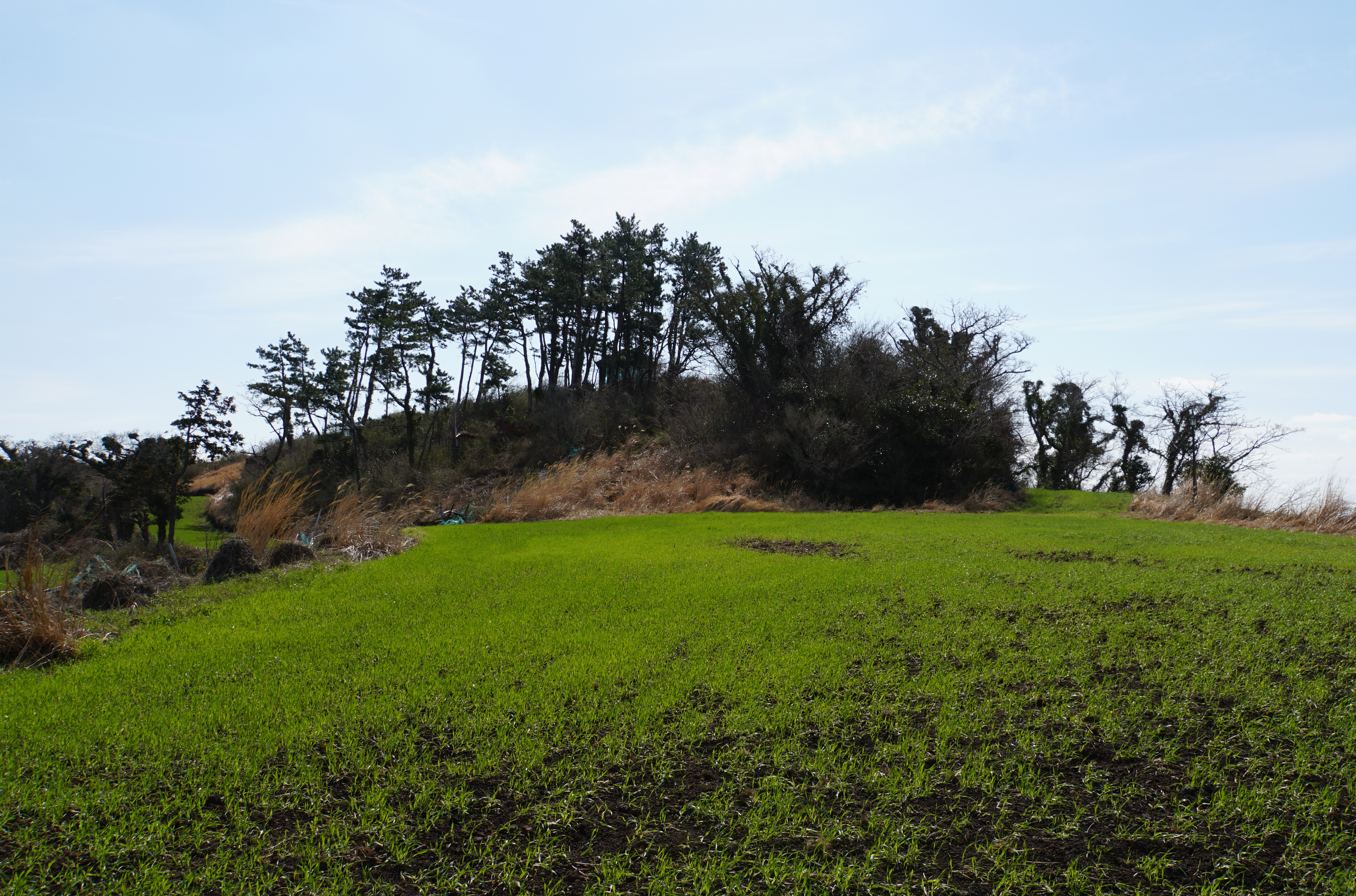 내려다 보이는 굼부리 - 예전에는 논이었을 것이나 지금은 과수원이 들어섰다.