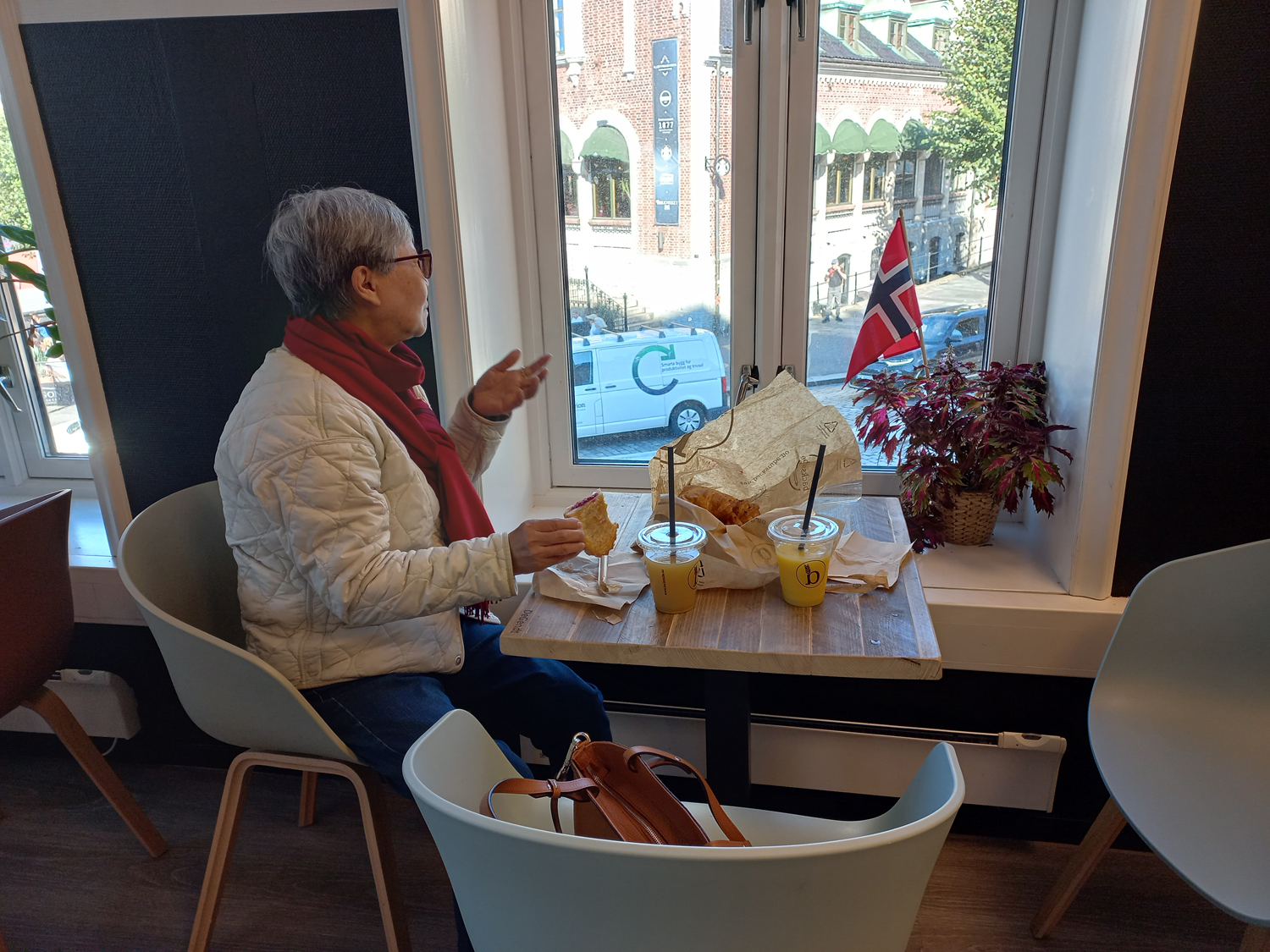 창가에 앉아 시내를 내려다보며..