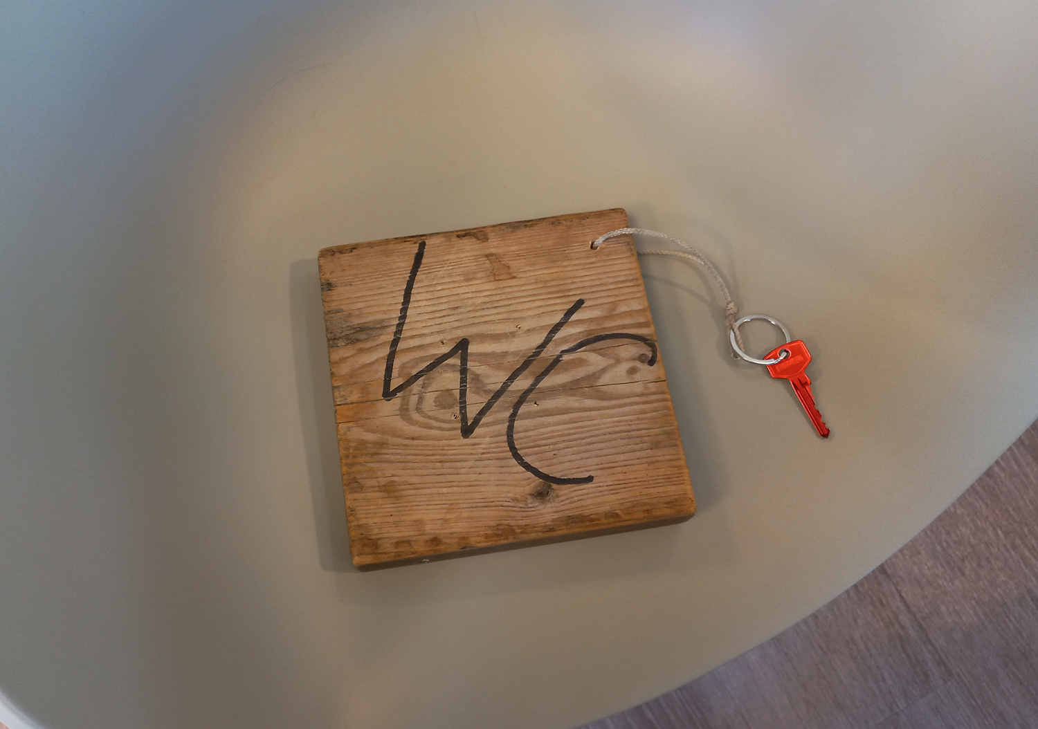점심 끝내고 카운터에서 건네받은 화장실 키 홀더! 카운터 아가씨도 나도 빵 터졌다. 다른 손님들에게도 보여줘 같이 웃었다. 키를 잃어버리지 않게 짜낸 아이디어.