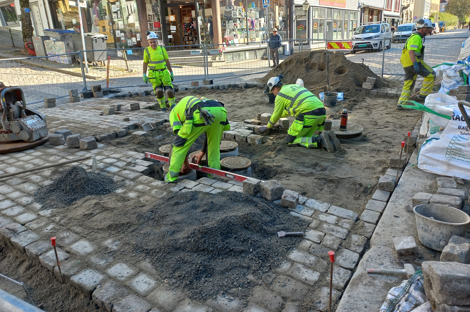도로보수 현장 - 자동차도로에 이렇게 돌을 깔아 옛 상태를 유지하려 하고있다.